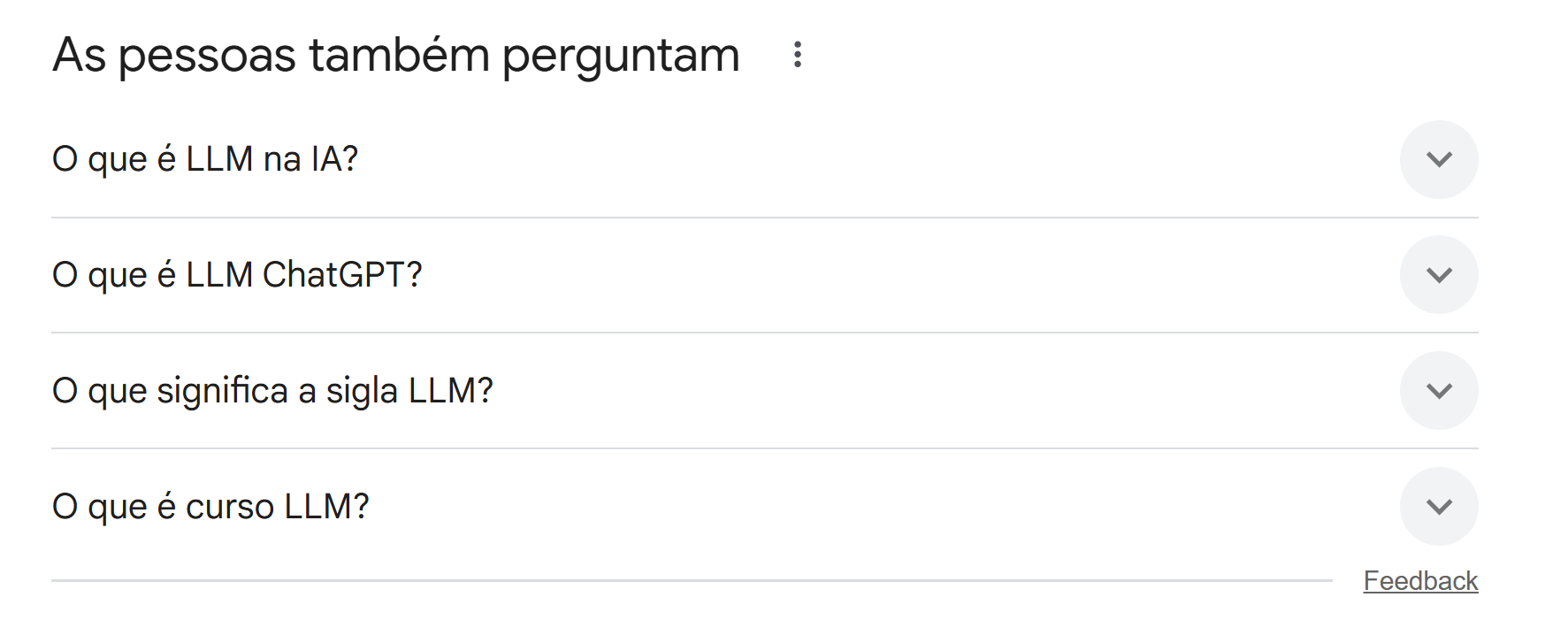 Pois é, tudo isso faz parte dos mecanismos de busca “tradicionais”. Não é de hoje que o Google se baseia na compreensão semântica das consultas pra mapear variações, sinônimos, dúvidas relacionadas e perguntas subsequentes (você com certeza já se deparou com aquela seção de “As pessoas também perguntam” durante as suas pesquisas).
